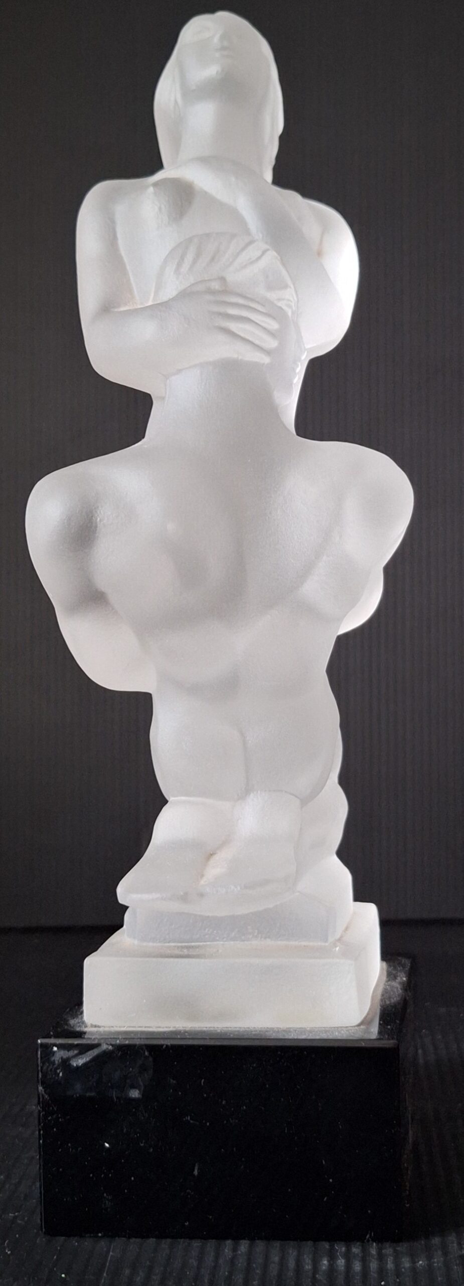 Figurální plastika „Milenci“ – Matované sklo (v. 26 cm x 13 cm x 7,5 cm)