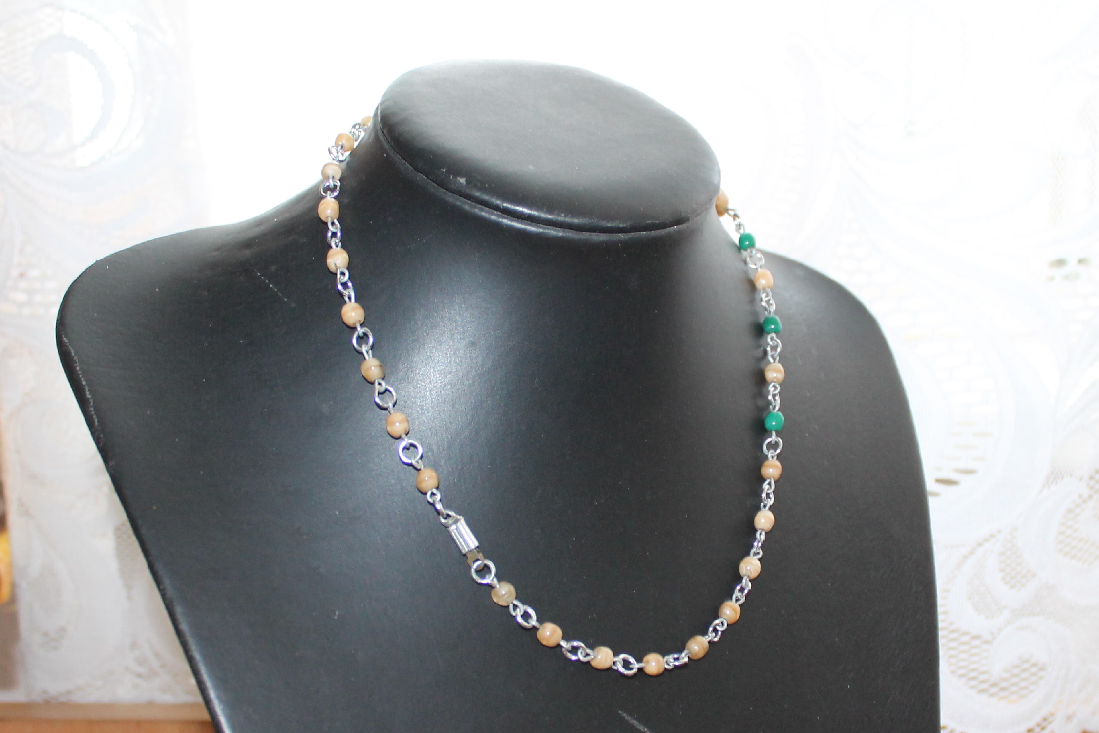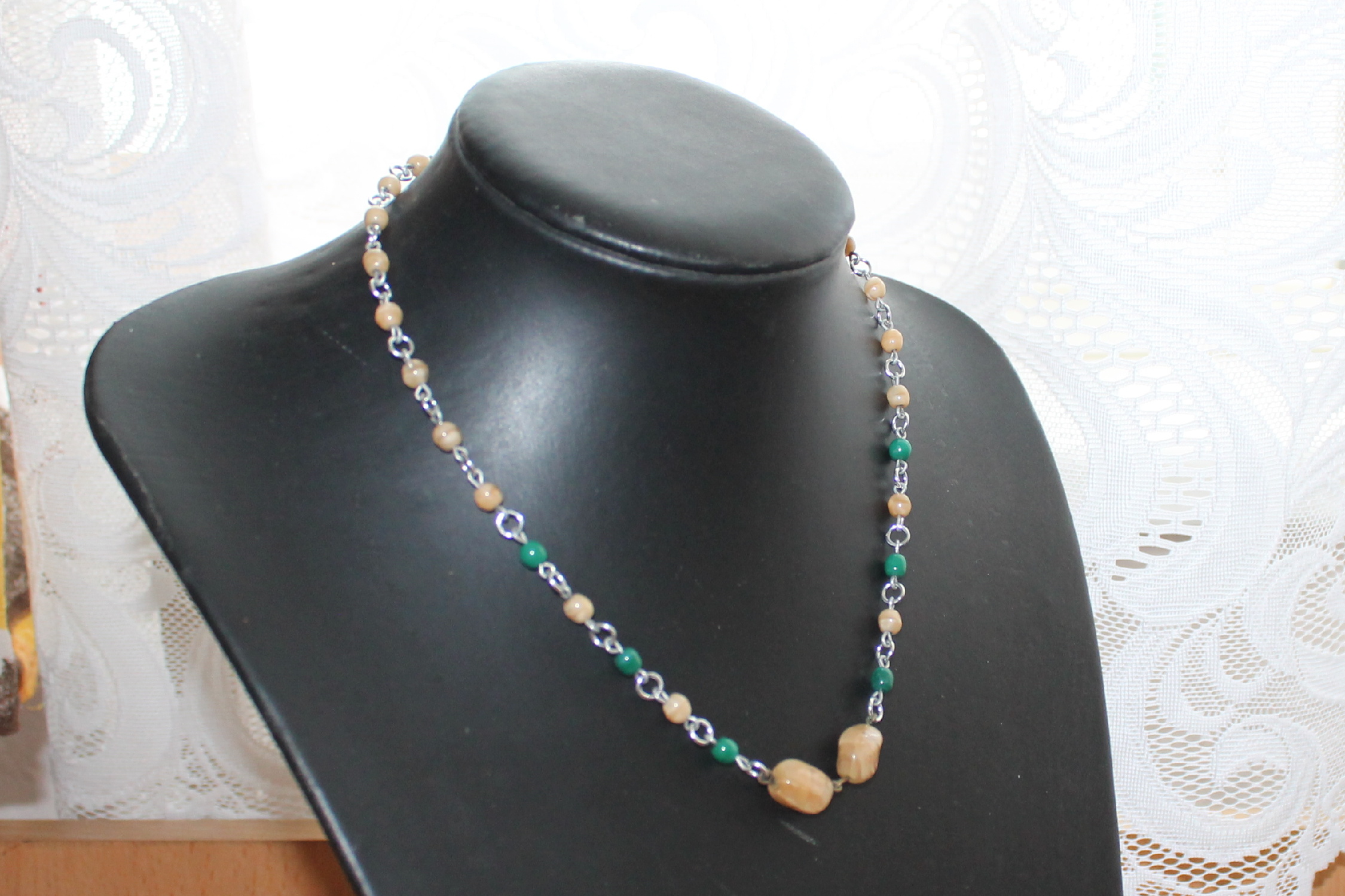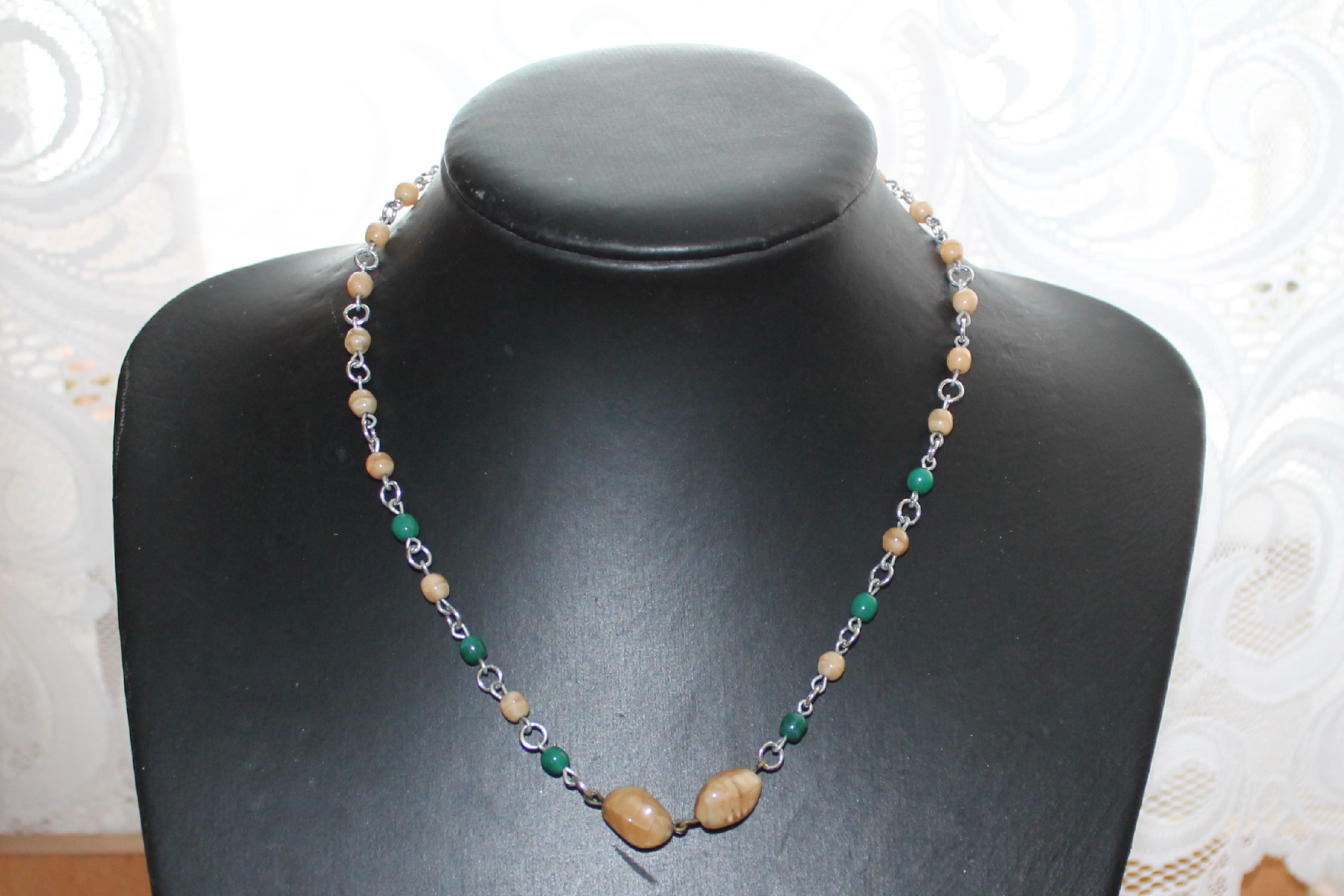 Ketlovaný vintage náhrdelník v jemných barevných odstínech modré a béžové.