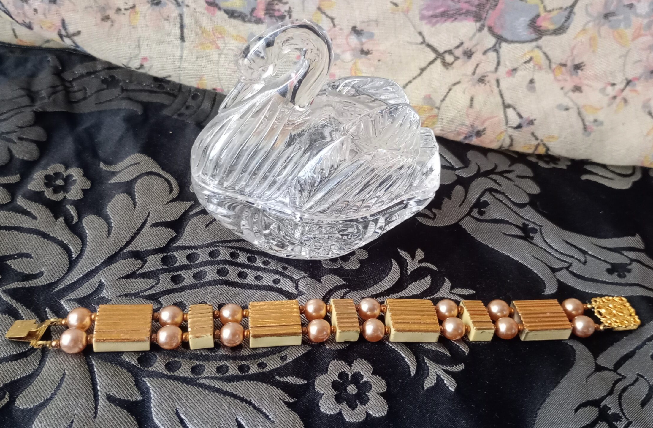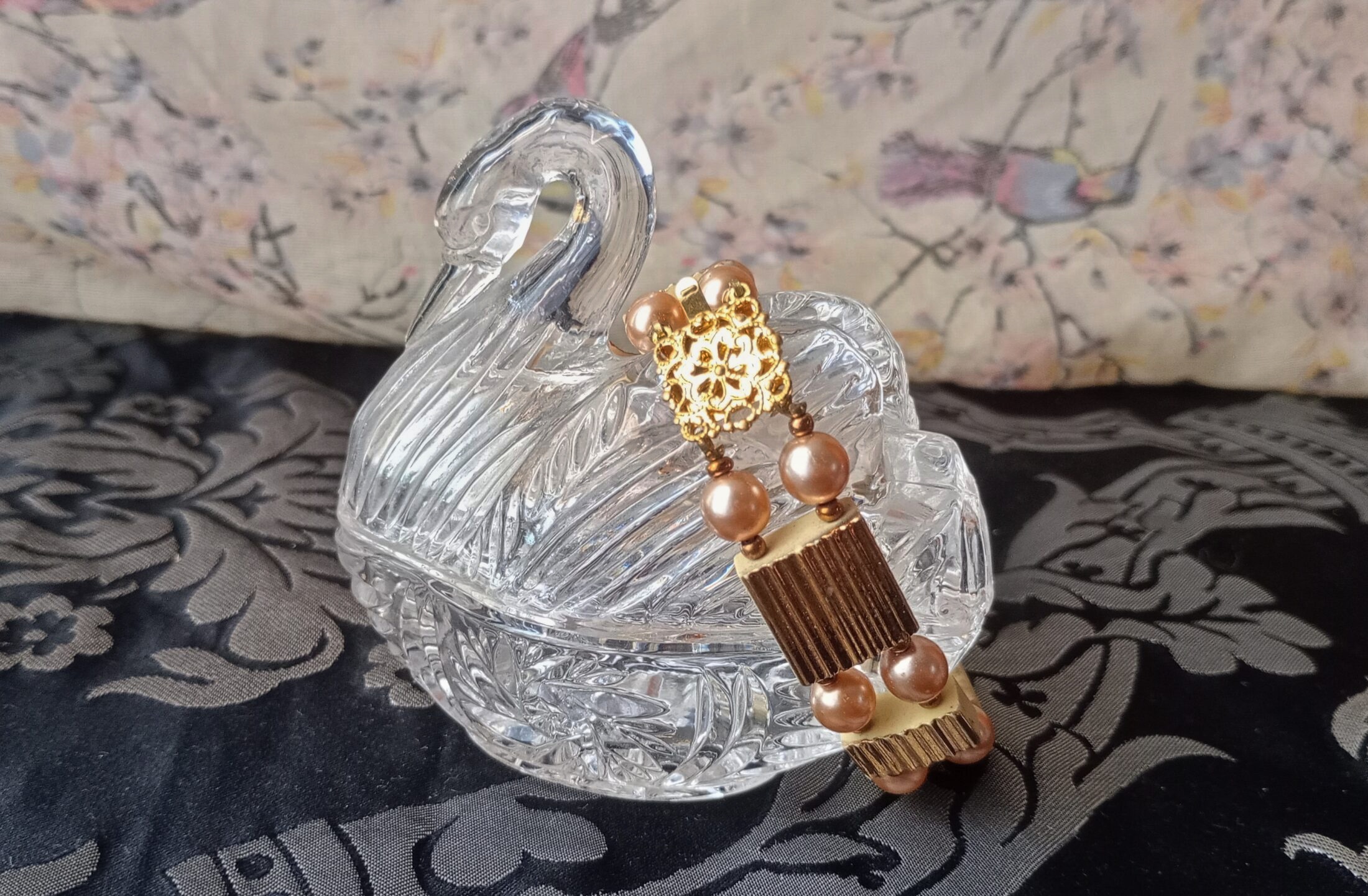 Nabízíme Vám vintage náramek vyrobený z keramických a voskovaných perlí doplněných rokajlem.